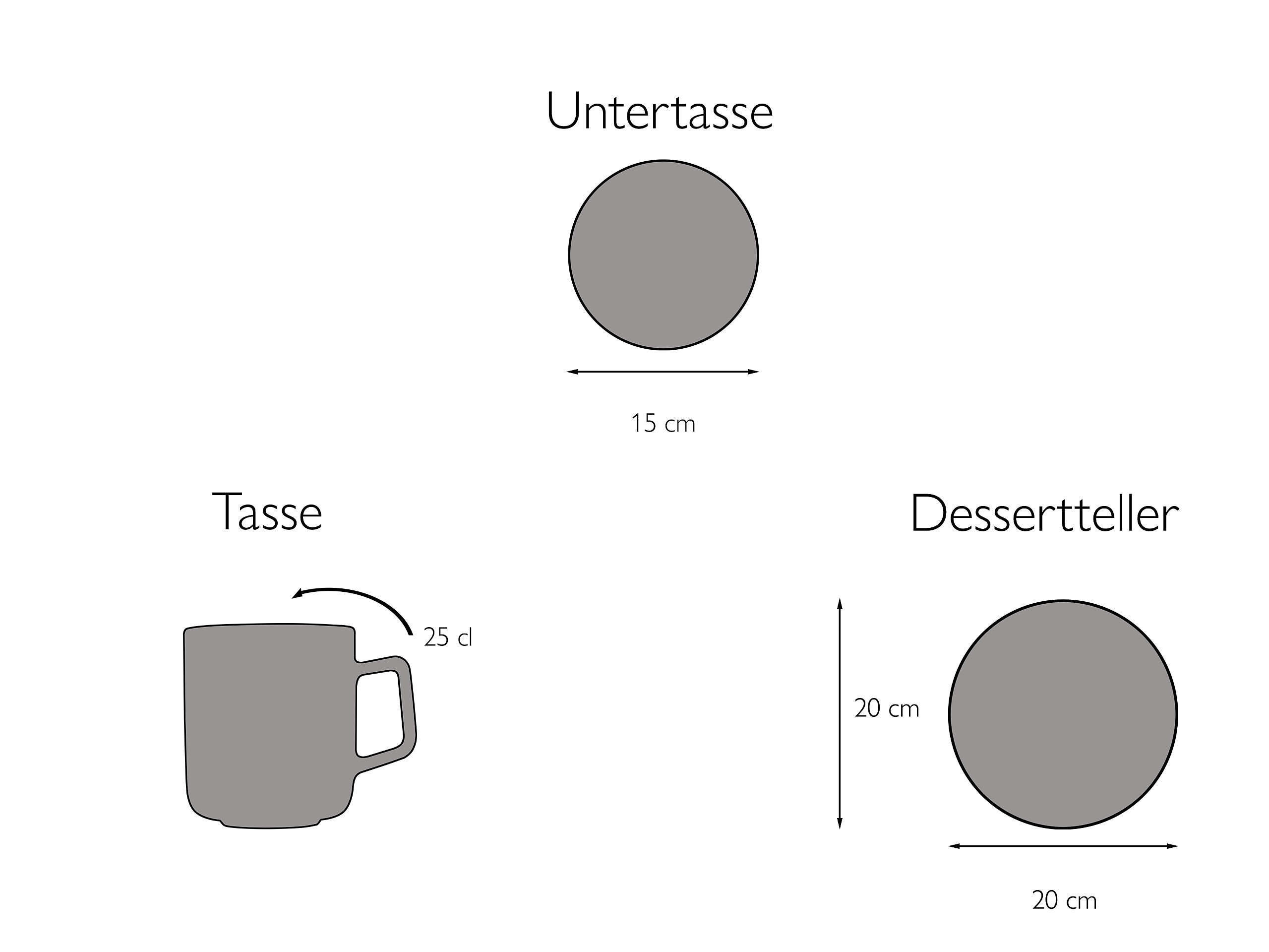 Sie erhalten hier ein 18 teiliges Porzellan Kaffeeservice aus einer hochwertigen Premiumproduktion „Made in Europe“ in folgender Zusammenstellung: - 6 Dessertteller 20 cm - 6 Kaffeetassen 25 cl - 6 Kaffeeuntere 15 cm
